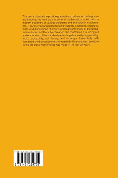 The gratifying response to Counterexamples in analysis (CEA) was followed, when the book went out of print, by expressions of dismay from those who were unable to acquire it. The connection of the present volume with CEA is clear, although the sights here are set higher. In the quarter-century since the appearance of CEA, mathematical education has taken some large steps reflected in both the undergraduate and graduate curricula. What was once taken as very new, remote, or arcane is now a well-established part of mathematical study and discourse. Consequently the approach here is designed to match the observed progress. The contents are intended to provide graduate and ad vanced undergraduate students as well as the general mathematical public with a modern treatment of some theorems and examples that constitute a rounding out and elaboration of the standard parts of algebra, analysis, geometry, logic, probability, set theory, and topology. The items included are presented in thespirit of a conversation among mathematicians who know the language but are interested in some of the ramifications of the subjects with which they routinely deal. Although such an approach might be construed as demanding, there is an extensive GLOSSARY jlNDEX where all but the most familiar notions are clearly defined and explained. The object ofthe body of the text is more to enhance what the reader already knows than to review definitions and notations that have become part of every mathematician's working context.