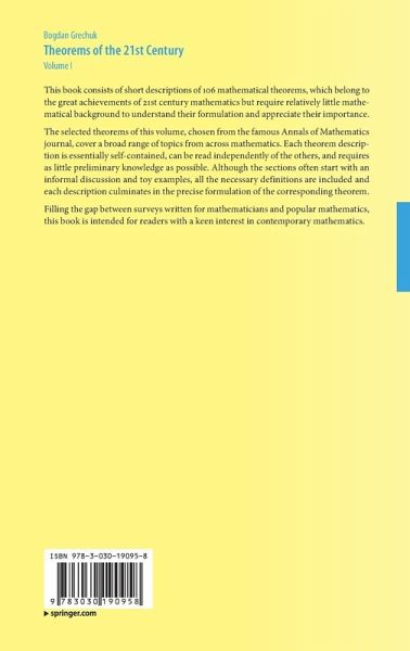 This book consists of short descriptions of 106 mathematical theorems, which belong to the great achievements of 21st century mathematics but require relatively little mathematical background to understand their formulation and appreciate their importance.
