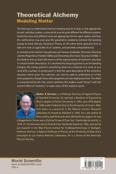 The best way to understand chemical bonding may be to take a view appropriate to each individual system, a view which may be quite different for various systems. Sometimes two very different views are appropriate for the same system, and then the combination may even give the parameters needed to estimate the bonding energy by hand. Density Functional Theory, on the other hand, generally tries to take one view as applicable to all systems, and proceeds computationally.In contrast to the author's two previous well-known textbooks, Electronic Structure and the Properties of Solids (1989) and Elementary Electronic Structure (1999), in this book he tries to distill the essence of the representation of electronic structure in a much briefer description. It is shortened by focusing primarily on the bonding energies, the energy gained in assembling atoms as a molecule or a solid, or as a solid with a surface. A central point is that the same description of the electronic structure which gives this cohesion, can also be used to understand all of the other properties, though those other properties are not emphasized here. The effort is characterized by the title, which combines the modern word ¿theory¿ with the ancient effort of ¿alchemy¿ to make sense of the material world.