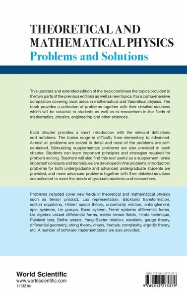 This updated and extended edition of the book combines the topics provided in the two parts of the previous editions as well as new topics. It is a comprehensive compilation covering most areas in mathematical and theoretical physics. The book provides a collection of problems together with their detailed solutions which will prove to be valuable to students as well as to researchers in the fields of mathematics, physics, engineering and other sciences. Each chapter provides a short introduction with the relevant definitions and notations. All relevant definitions are given. The topics range in difficulty from elementary to advanced. Almost all problems are solved in detail and most of the problems are self-contained. Stimulating supplementary problems are also provided in each chapter. Students can learn important principles and strategies required for problem solving. Teachers will also find this text useful as a supplement, since important concepts and techniques are developed in the problems. Introductory problems for both undergraduate and advanced undergraduate students are provided. More advanced problems together with their detailed solutions are collected, to meet the needs of graduate students and researchers. Problems included cover new fields in theoretical and mathematical physics such as tensor product, Lax representation, Bäcklund transformation, soliton equations, Hilbert space theory, uncertainty relation, entanglement, spin systems, Lie groups, Bose system, Fermi systems differential forms, Lie algebra valued differential forms, metric tensor fields, Hirota technique, Painlevé test, Bethe ansatz, Yang–Baxter relation, wavelets, gauge theory, differential geometry, string theory, chaos, fractals, complexity, ergodic theory, etc. A number of software implementations are also provided.