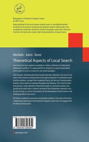 From the reviews: "This book focuses on theoretical aspects, in mainly three areas: performance guarantees, time complexity, asymptotic convergence. ... Throughout the authors avoid excessive and unnecessary formalism which leads to a style that makes even the more technical proofs quite easily readable. The book is suitable for a postgraduate course on the theory of local search. With its collection of results concerning the theoretical aspects of local search it is a most welcome addition to the literature on the topic." (Matthias Ehrgott, Zentralblatt MATH, Vol. 1130 (8), 2008) "The book gives a nice overview of theoretical results obtained for some local search algorithms used to solve combinatorial optimization problems. ... The book is written for students from graduate level and for interested scholars working on related fields of science and engineering. ... it can be recommended as an introductory textbook as well. ... The authors did a good job in selecting the material, and the presentation is also nice. The book can be well recommended to the interested reader." (Tibor Csendes, Siam Review, Vol. 50 (3), 2008) "Theoretical Aspects of Local Search focuses on local search for combinatorial optimization problems. ... This book provides deep theoretical analysis; it includes many theorems and proofs and some examples. Each chapter has bibliographical notes and exercises. I recommend it to students and researchers who ... are interested in the theoretical aspects of local search." (Julius Zilinskas, Interfaces, Vol. 38 (3), 2008) "The book focuses on three main topics: performance guarantees, investigations of time complexity, and asymptotic convergence studies in the case where a probabilistic iteration mechanism is applied. ... Overall, this book brings to its readers many fresh ideas in the field of local search. ... The book is very well written, and authored by well-known researchers involved in the field. ... the book will be very useful for researchers, students, and engineers involved in optimization." (Patrick Siarry, ACM Computing Reviews, Vol. 49 (5), 2008) "As the title of the book indicates, the authors focus on the theoretical aspects of local search. ... I can recommend the book to readers who are interested in such an introduction. The book should be particularly interesting for students who already know the basic concepts in complexity theory and are eager to see what these (and related) concepts are good for in the world of local search." (Hans-Ulrich Simon, Mathematical Reviews, Issue 2009 g) "The authors of the book under review are in an excellent position to write a very different account. ... clearly aimed at advanced undergraduate students, although the blurb mentions 'researchers and graduate students' as the intended audience. ... the book provides a concise and easily understandable introduction to the basics of local search, an important concept in the design of heuristics. ... it is well-suited for a term-long course on heuristic design for theoretically-inclined undergraduates and first-year graduate students." (Jakub Mare¿ek, SIGACT News, Vol. 40 (2), 2009)