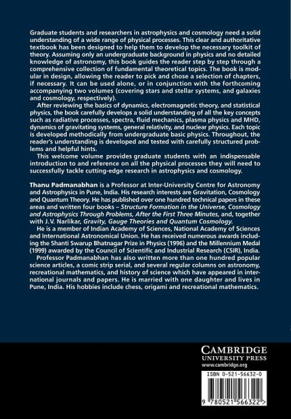 Graduate students and researchers in astrophysics and cosmology need a solid understanding of a wide range of physical processes. This clear and authoritative book has been designed to help them to develop the necessary toolkit of theory. The book is modular in design, allowing the reader to pick and choose a selection of chapters, if necessary. It can be used alone, or in conjunction with the accompanying two volumes (covering stars and stellar systems, and galaxies and cosmology, respectively). After reviewing the basics of dynamics, electromagnetic theory, and statistical physics, the book carefully develops a solid understanding of radiative processes, spectra, fluid mechanics, plasma physics and MHD, dynamics of gravitating systems, general relativity, nuclear physics, and other key concepts. Throughout, the reader's understanding is developed and tested with problems and helpful hints. This welcome volume provides graduate students with an indispensable introduction to and reference on all the physical processes they will need to successfully tackle research in astrophysics and cosmology.
