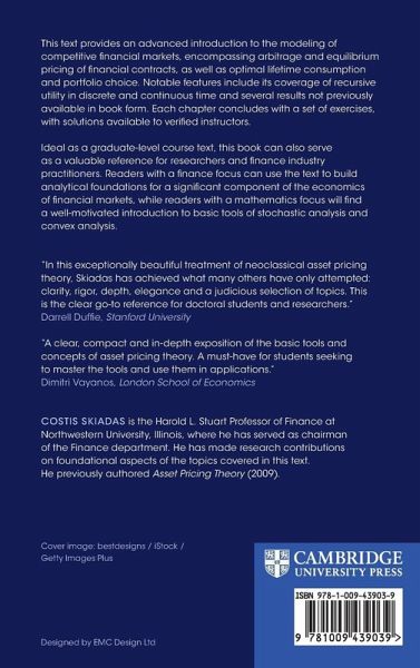 This text provides an advanced introduction to the modeling of competitive financial markets, encompassing arbitrage and equilibrium pricing of financial contracts, as well as optimal lifetime consumption and portfolio choice. Notable features include its coverage of recursive utility in discrete and continuous time and several results not previously available in book form. Each chapter concludes with a set of exercises, with solutions available to verified instructors. Ideal as a graduate-level course text, this book can also serve as a valuable reference for researchers and finance industry practitioners. Readers with a finance focus can use the text to build analytical foundations for a significant component of the economics of financial markets, while readers with a mathematics focus will find a well-motivated introduction to basic tools of stochastic analysis and convex analysis.