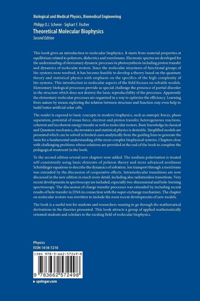To the second edition several new chapters were added. The medium polarization is treated self-consistently using basic elements of polaron theory and more advanced nonlinear Schrödinger equations to describe the dynamicsof solvation. Ion transport through a membrane was extended by the discussion of cooperative effects. Intramolecular transitions are now discussed in the new edition in much more detail, including also radiationless transitions. Very recent developments in spectroscopy are included, especially two-dimensional and hole-burning spectroscopy. The discussion of charge transfer processes was extended by including recent results of hole transfer in DNA in connection with the super-exchange mechanism. The chapter on molecular motors was rewritten to include the most recent developments of new models.