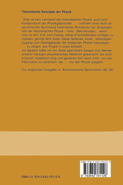 "Dies ist kein Lehrbuch der theoretischen Physik, auch kein Kompendium der Physikgeschichte ... , vielmehr eine recht anspruchsvolle Sammlung historischer Miniaturen zur Vergangenheit der theoretischen Physik - ihrer "Sternstunden", wenn man so will. Frei vom Zwang, etwas Erschöpfendes vorlegen zu müssen, gelingt dem Autor etwas Seltenes: einen "lebendigen" Zugang zum Ideengebäude der modernen Physik freizulegen, ... zu zeigen, wie Physik in praxi entsteht... Als Vehikel seiner Absichten dienen dem Autor geschichtliche Fallstudien, insgesamt sieben an der Zahl. Aus ihnen extrahiert er das seiner Meinung nach Lehrhafte, dabei bestrebt, mathematische Anachronismen womöglich zu vermeiden... Als Student hätte ich mir diese gescheiten Essays zum Werden unserer heutigen physikalischen Weltsicht gewünscht. Sie sind originell, didaktisch klug und genieren sich auch nicht, von der Faszination zu sprechen, die ... von der Physik ausgeht. Unnötig darauf hinzuweisen, das sie ein gründliches "konventionelles" Studium weder ersetzen wollen noch können, sie vermögen aber, dazu zu ermuntern." #Astronomische Nachrichten (zur englischen Ausgabe)#1