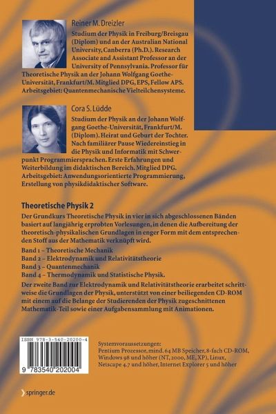 Der zweite Band zur Elektrodynamik und Relativitätstheorie erarbeitet schrittweise die Grundlagen der Physik, unterstützt von einer beiliegenden CD-ROM mit einem auf die Belange der Studierenden der Physik zugeschnittenen Mathematik-Teil sowie einer interaktiven Aufgabensammlung mit Animationen.
