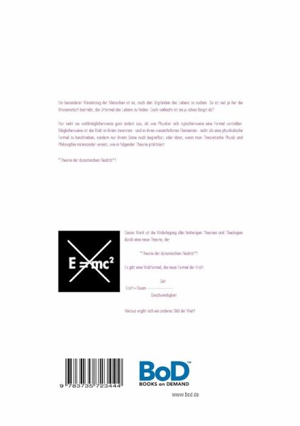 Ein besonderer Wesenszug der Menschen ist es, nach den Urgründen des Lebens zu suchen. So ist seit je her die Wissenschaft bestrebt, die Urformel des Lebens zu finden. Doch vielleicht ist sie ja schon längst da? Nur sieht sie wohlmöglicherweise ganz anders aus, als wie Physiker sich typischerweise eine Formel vorstellen. Möglicherweise ist die Welt in ihrem Innersten - und in ihren wesentlichsten Elementen - nicht als eine physikalische Formel zu beschreiben, sondern nur ihrem Sinne nach begreifbar; oder dann, wenn man Theoretische Physik und Philosophie miteinander vereint, wie in folgender Theorie praktiziert: "Theorie der dynamischen Realität"!