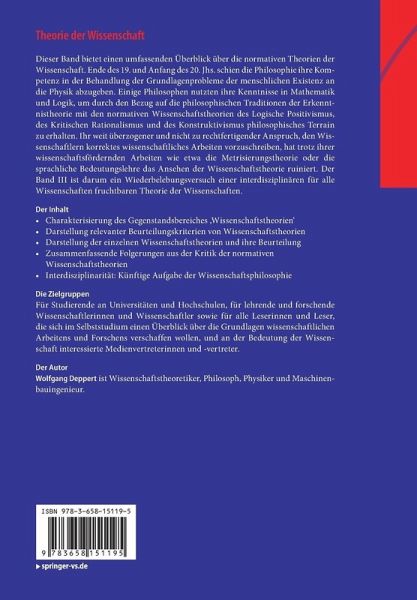Dieser Band bietet einen umfassenden Überblick über die normativen Theorien der Wissenschaft. Ende des 19. und Anfang des 20. Jhs. schien die Philosophie ihre Kompetenz in der Behandlung der Grundlagenprobleme der menschlichen Existenz an die Physik abzugeben. Einige Philosophen nutzten ihre Kenntnisse in Mathematik und Logik, um durch den Bezug auf die philosophischen Traditionen der Erkenntnistheorie mit den normativen Wissenschaftstheorien des Logische Positivismus, des Kritischen Rationalismus und des Konstruktivismus philosophisches Terrain zu erhalten. Ihr weit überzogener und nicht zu rechtfertigender Anspruch, den Wissenschaftlern korrektes wissenschaftliches Arbeiten vorzuschreiben, hat trotz ihrer wissenschaftsfördernden Arbeiten wie etwa die Metrisierungstheorie oder die sprachliche Bedeutungslehre das Ansehen der Wissenschaftstheorie ruiniert. Der Band III ist darum ein Wiederbelebungsversuch einer interdisziplinären für alle Wissenschaften fruchtbaren Theorie derWissenschaften.