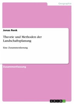 Zusammenfassung aus dem Jahr 2015 im Fachbereich Landschaftsarchitektur, Landespflege, Gartenbau, Note: 1,7, Technische Universität München, Sprache: Deutsch, Abstract: Der Text gibt einen stichpunktartigen Überblick zu den Theorien und Methoden, die der Landschaftsplanung in Deutschland zugrunde liegen. Die Zusammenfassung basiert auf einer Vorlesung am Wissenschaftszentrum Weihenstephan (WZW) an der Technischen Universität München (TUM) 2015. Die angegebene Note bezieht sich auf die erbrachte Prüfungsleistung in dem entsprechenden Modul.