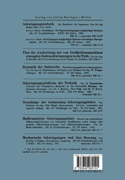 Erster Teil..- I. Einführende Betrachtungen.- II. Theoretische Grundlagen.- III. Die Schwingungsprüfmaschinen.- IV. Die Ausführung dynamischer Messungen.- V. Die Auswertung der Resonanzkurven.- Zweiter Teil. Praktische Anwendungen..- VI. Dynamische Messungen an Brücken.- VII. Dynamische Messungen an Schiffen.- VIII. Dynamische Messungen an Bettungen aller Art.- IX. Weitere Anwendungsgebiete.- Schrifttum.