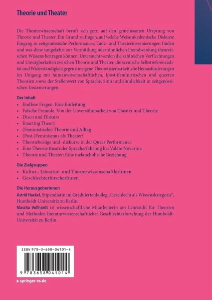 Die Theaterwissenschaft beruft sich gern auf den gemeinsamen Ursprung von Theorie und Theater. Ein Grund zu fragen, auf welche Weise akademische Diskurse Eingang in zeitgenössische Performances, Tanz- und Theaterinszenierungen finden und was diese umgekehrt zur Vermittlung oder sinnlichen Fremdwerdung theoretischen Wissens beitragen können. Untersucht werden die zahlreichen Verflechtungen und Unwägbarkeiten zwischen Theorie und Theater, die szenische Selbstreferenzialität und Widerständigkeit gegen die eigene Theoretisierbarkeit, die Herausforderungen im Umgang mit humanwissenschaftlichen, (post-)feministischen und queeren Theorien sowie der Stellenwert von Sprache, Sinn und Sinnlichkeit in zeitgenössischen Inszenierungen.