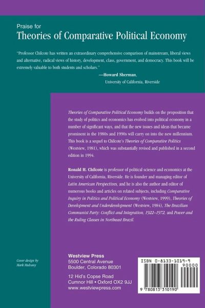 "Professor Chilcote has written an extraordinary comprehensive comparison of mainstream, liberal views and alternative, radical views of history, development, class, government, and democracy. This book will be extremely valuable to both students and scholars." -Howard Sherman, University of California, Riverside Theories of Comparative Political Economy builds on die proposition that the study of politics and economics has evolved into political economy in a number of significant ways, and that the new issues and ideas that became prominent in the 1980s and 1990s will cany on into the new millennium. This book is a sequel to Chilcote's Theories of Comparative Politics (Westview, 1981), which was substantially revised and published in a second edition in 1994.