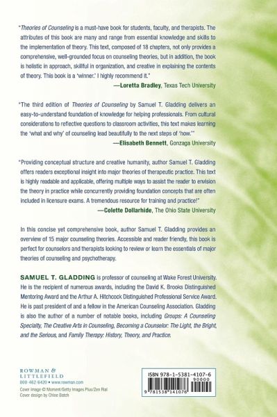 In this concise yet comprehensive book, author Samuel T. Gladding provides an overview of 15 major counseling theories. Accessible and reader friendly, this book is perfect for counselors and therapists looking to review or learn the essentials of major theories of counseling and psychotherapy.