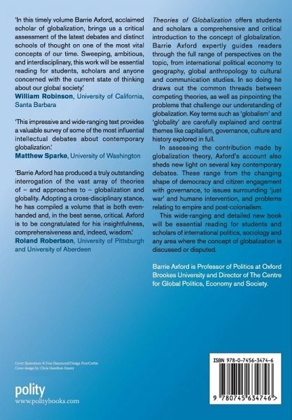 Theories of Globalization offers students and scholars a comprehensive and critical introduction to the concept of globalization. Barrie Axford expertly guides readers through the full range of perspectives on the topic, from international political economy to geography, global anthropology to cultural and communication studies. In so doing he draws out the common threads between competing theories, as well as pinpointing the problems that challenge our understanding of globalization. Key terms such as 'globalism' and 'globality' are carefully explained and central themes like capitalism, governance, culture and history explored in full. In assessing the contribution made by globalization theory, Axford's account also sheds new light on several crucial current issues. These range from the changing shape of democracy and citizen engagement with governance, to issues surrounding 'just war' and humane intervention, and problems relating to empire and post-colonialism. This wide-ranging and detailed new book will be essential reading for students and scholars of international politics, sociology and any area where the concept of globalization is discussed and disputed.