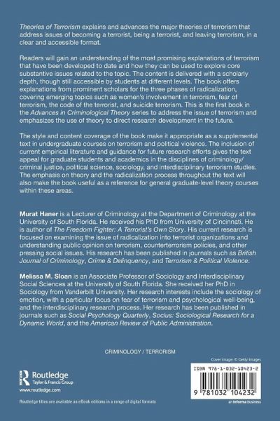 Theories of Terrorism explains and advances the major theories of terrorism that address issues of becoming a terrorist, being a terrorist, and leaving terrorism, in a clear and accessible format.