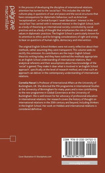 This volume outlines the methods appropriate to an English School understanding of international relations and their assumptions about how knowledge of the social is gained. It makes clear what is involved in 'an English School approach' and what such an approach delivers in the contemporary understanding of international relations.