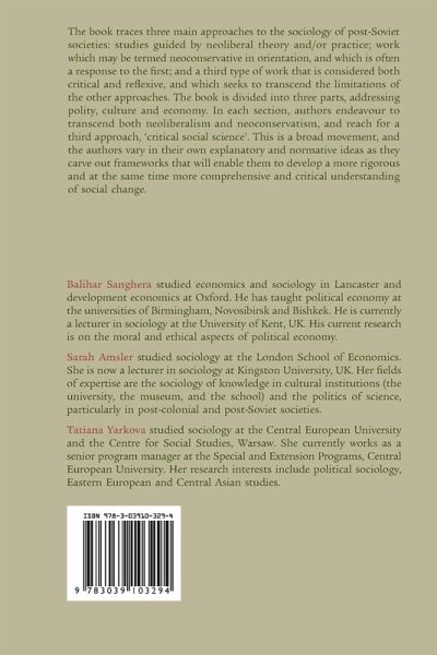 The book traces three main approaches to the sociology of post-Soviet societies: studies guided by neoliberal theory and/or practice; work which may be termed neoconservative in orientation, and which is often a response to the first; and a third type of work that is considered both critical and reflexive, and which seeks to transcend the limitations of the other approaches. The book is divided into three parts, addressing polity, culture and economy. In each section, authors endeavour to transcend both neoliberalism and neoconservatism, and reach for a third approach, 'critical social science'. This is a broad movement, and the authors vary in their own explanatory and normative ideas as they carve out frameworks that will enable them to develop a more rigorous and at the same time more comprehensive and critical understanding of social change.