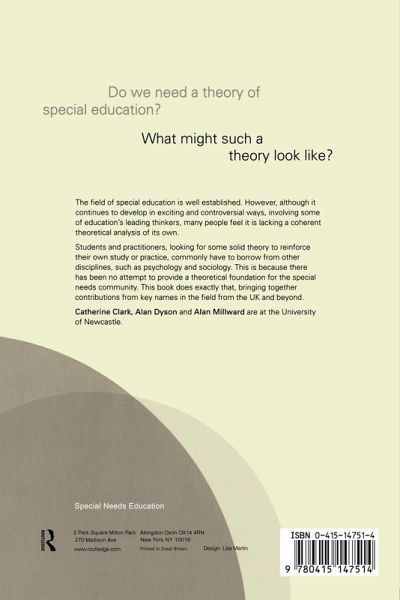 The field of special needs education is well established, and although it continues to develop in exciting and controversial ways, involving some of education's leading thinkers, many people feel it is lacking a coherent theoretical analysis of its own. Students and practitioners, looking for some solid theory to reinforce their own study or practice, commonly have to 'borrow' from other disciplines, such as psychology and sociology, since there has been no attempt to provide a theoretical foundation for the special needs community. This book does exactly that, bringing together contributions from key names in the field from UK and beyond. The book will establish itself as an essential text for students and teachers, as well as all those involved in special needs across the social sciences.