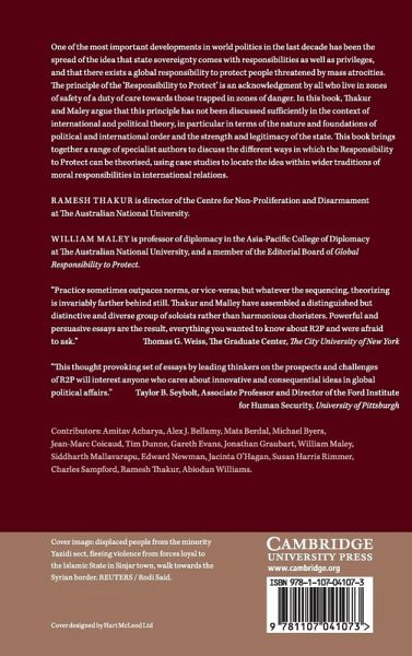 Part I. Context: 1. Introduction. Theorising global responsibilities Ramesh Thakur and William Maley; 2. The evolution of the Responsibility to Protect: from concept and principle to actionable norm Gareth Evans; 3. From the right to persecute to the Responsibility to Protect: Feuerbachian inversions of rights and responsibilities in state-citizen relations Charles Sampford and Ramesh Thakur; 4. R2P and a theory of norm circulation Amitav Acharya; Part II. The Responsibility to Protect, Normative Theory, and Global Governance: 5. Responsibility to Protect and world order Tim Dunne; 6. International law and the Responsibility to Protect Michael Byers; 7. The Responsibility to Protect, multilateralism and international legitimacy Edward Newman; 8. Global governance and the Responsibility to Protect Abiodun Williams; 9. International law, the Responsibility to Protect, and international crises Jean-Marc Coicaud; 10. The Responsibility to Protect and the just war tradition Alex J. Bellamy; 11. War is not the answer: R2P and military intervention Jonathan Graubart; Part III. The Responsibility to Protect and International Social Purposes: 12. United Nations peacekeeping and the Responsibility to Protect Mats Berdal; 13. Humanitarian law, refugee protection, and the Responsibility to Protect William Maley; 14. Is the Responsibility to Protect doctrine gender-neutral? Susan Harris Rimmer; 15. The Responsibility to Protect: a western idea? Jacinta O'Hagan; 16. Colonialism and the Responsibility to Protect Siddharth Mallavarapu.