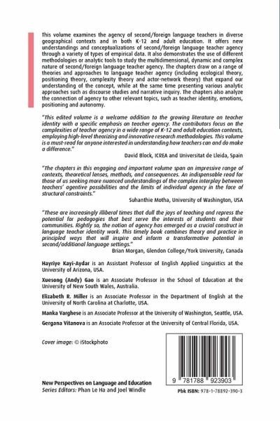 This volume examines the agency of second/foreign language teachers in diverse geographical contexts. It offers new understandings and conceptualizations through a variety of types of empirical data. It also demonstrates the use of different methodologies to analyze the multidimensional, dynamic and complex nature of language teacher agency.