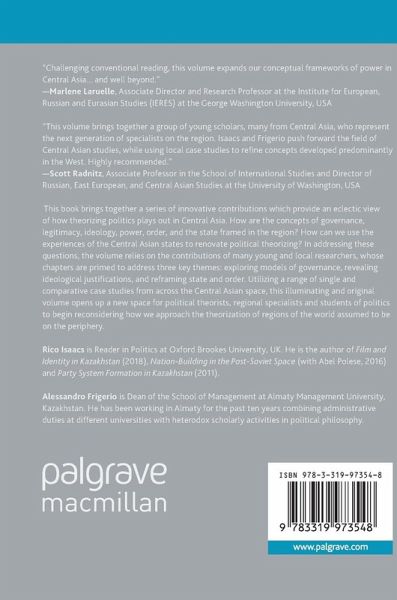"Theorizing Central Asian Politics is a book that is destined to have a long shelf-life, due to its innovative approach that seeks to reframe theoretically the work of scholars with first-class knowledge of Central Asia, its languages, its politics and its societies." (Luca Anceschi, Inner Asia, Vol. 21, 2019)