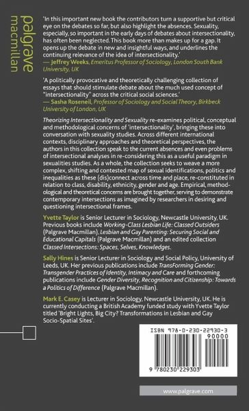 'Since the 1980s theories of intersectionality have provided a vital means of exploring the overlapping, interweaving forms of power and domination, especially around race, gender and class, and the ways they impact on the reality of individual lives. In this important new book the contributors turn a supportive but critical eye on the debates so far, but also highlight the absences. Sexuality, especially, so important in the early days of debates about intersectionality, has often been neglected. This book more than makes up for a gap. It opens up the debate in new and insightful ways, and underlines the continuing relevance of the idea of intersectionality.' - Jeffrey Weeks, Emeritus Professor of Sociology, London South Bank University, UK