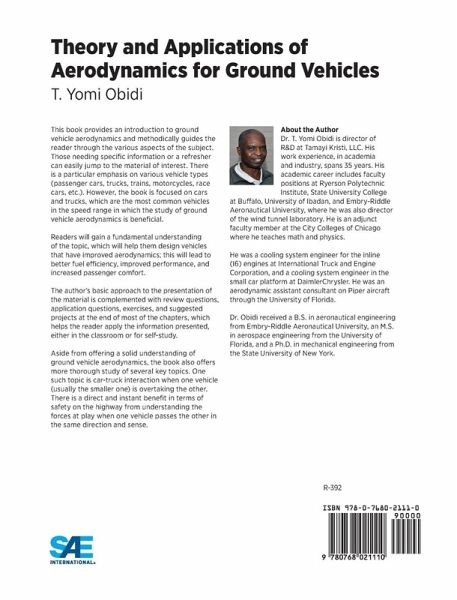 Independent Book Publishers Association (IBPA) Benjamin Franklin Silver Award Recipient, Professional & Technical Category This best-selling book provides an introduction to ground vehicle aerodynamics and methodically guides the reader through the various aspects of the subject. Those needing specific information or a refresher can easily jump to the material of interest. There is a particular emphasis on various vehicle types (passenger cars, trucks, trains, motorcycles, race cars, etc.). However, the book is focused on cars and trucks, which are the most common vehicles in the speed range in which the study of ground vehicle aerodynamics is beneficial. Readers will gain a fundamental understanding of the topic, which will help them design vehicles that have improved aerodynamics; this will lead to better fuel efficiency, improved performance, and increased passenger comfort. The author's basic approach to the presentation of the material is complemented with review questions, application questions, exercises, and suggested projects at the end of most of the chapters, which helps the reader apply the information presented, either in the classroom or for self-study. Aside from offering a solid understanding of ground vehicle aerodynamics, the book also offers more thorough study of several key topics. One such topic is car-truck interaction, when one vehicle (usually the smaller one) is overtaking the other. There is a direct and instant benefit in terms of safety on the highway from understanding the forces at play when one vehicle passes the other in the same direction and sense. Chapters Examine:Drag Noise and vehicle soiling Wind tunnels and road/track testing Numerical methods Vehicle stability and control Vehicle sectional design Large vehicles: trucks, trailers, buses, trains Severe service and off-road vehicles Race cars and convertibles Motorcycles Concept vehicles