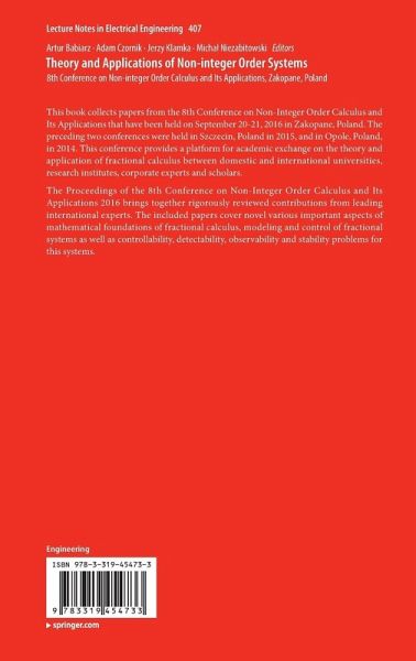 The Proceedings of the 8th Conference on Non-Integer Order Calculus and Its Applications 2016 brings together rigorously reviewed contributions from leading international experts. The included papers cover novel various important aspects of mathematical foundations of fractional calculus, modeling and control of fractional systems as well as controllability, detectability, observability and stability problems for this systems.