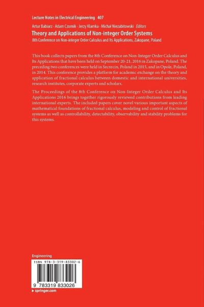 The Proceedings of the 8th Conference on Non-Integer Order Calculus and Its Applications 2016 brings together rigorously reviewed contributions from leading international experts. The included papers cover novel various important aspects of mathematical foundations of fractional calculus, modeling and control of fractional systems as well as controllability, detectability, observability and stability problems for this systems.