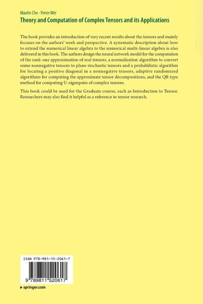 The book provides an introduction of very recent results about the tensors and mainly focuses on the authors' work and perspective. A systematic description about how to extend the numerical linear algebra to the numerical multi-linear algebra is also delivered in this book. The authors design the neural network model for the computation of the rank-one approximation of real tensors, a normalization algorithm to convert some nonnegative tensors to plane stochastic tensors and a probabilistic algorithm for locating a positive diagonal in a nonnegative tensors, adaptive randomized algorithms for computing the approximate tensor decompositions, and the QR type method for computing U-eigenpairs of complex tensors.