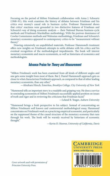 Focusing on the period of Milton Friedman's collaboration with Anna J. Schwartz, this work examines the history of debates between Friedman and his critics over money's causal role in business cycles. Professor Hammond shows that critics' reactions were grounded in two distinctive features of Friedman and Schwartz's way of doing economic analysis - their National Bureau business-cycle methods and Friedman's Marshallian methodology. With the postwar dominance of Cowles Commission methods and Walrasian methodology, Friedman and Schwartz's monetary economics appeared to contemporary critics to be "measurement without theory". Drawing extensively on unpublished materials, Professor Hammond's treatment offers new insights on Friedman's attempts to settle debates with his critics and his eventual recognition of the methodological impediments. The book will interest monetary economists and macroeconomists, as well as historians of economics and methodologists.