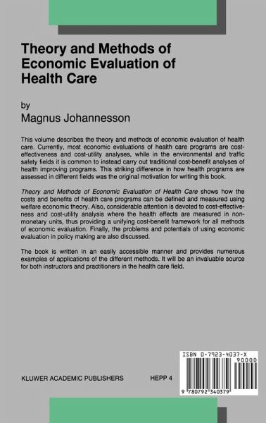 Most economic evaluations of health care programmes at the moment are cost effectiveness and cost-utility analyses. The problem with these methods is that their theoretical foundations are unclear. This has led to confusion about how to define the costs and health effects and how to interpret the results of these studies. In the environmental and traffic safety fields it is instead common to carry out traditional cost-bene:fit analyses of health improving programmes. This striking difference in how health programmes are assessed in different fields was the original motivation for writing this book. The aim of the book is to tty and provide a coherent framework within cost-bene:fit analysis and welfare economics for the different methods of economic evaluation in the health care field. The book is written in an easily accessible manner and several examples of applications of the different methods are provided. It is my hope that it will be useful both for teaching purposes and as a guide for practitioners in the field. Glenn C. Blomquist, John D. Graham, Rich O'Conor and four anonymous referees provided helpful comments on previous versions of the manuscript. I would also like to express my gratitude to the following persons for helping me to prepare the manuscript: Carl-Magnus Berglund, Carin Blanksvard, Ann Brown, and Ziad Obeid.
