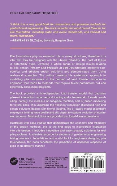 Pile Foundations are an essential basis for many structures. It is vital that they be designed with the utmost reliability, because the cost of failure is potentially huge. Covering a whole range of design issues relating to pile design, this book presents economical and efficient design solutions and demonstrates them using real world examples. Coverage includes nonlinear response of single piles to vertical or torsional loading and to cyclic lateral loading, as well as prediction of nonlinear response of lateral pile groups, vertically loaded pile groups and the design of slope stabilising piles. Most solutions are provided as closed-form expressions. Theory and Practice of Pile Foundations is: illustrated with case studies accompanied by practical applications in Excel and MathCad the first book to incorporate nonlinear interaction into pile design. A valuable resource for students of geotechnical engineering taking courses in foundations and a vital tool for engineers designing pile foundations.