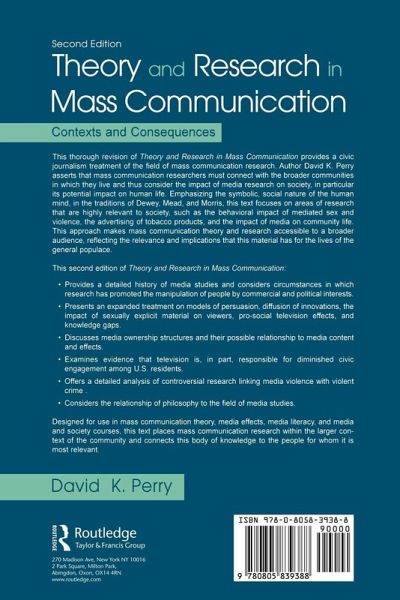 This updated edition presents a civic journalism treatment of the field of mass communication research. The sine qua non of the civic journalism movement seems to center around an implicit assumption that the human mind is an evolved part in the natural world, not a detached spectator as much traditional philosophy assumes. Thus, it has attempted to encourage journalists and members of their audiences to participate actively in civic life. Applying the same idea to mass communication academics, this book focuses on the empirical consequences of their work, especially its possible impact on human life. It argues that researchers need to connect with the broader communities in which they live and considers the impact of media research on society. Features of the second edition include: *detailed update of research evidence concerning the media violence issue; *additional material concerning media ownership structures and their possible relationship to media content and effects; *new material focusing on the impact of tobacco and alcohol advertising; *updated and expanded section concerning the history of media studies; and *an expanded discussion of philosophical issues pertaining to theory construction. This book is intended for graduate and advanced undergraduate students studying mass communication theory and related subjects, such as communication theory, media effects, media literacy, and media and society.