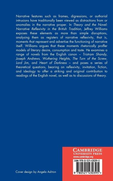Narrative features such as frames, digressions, or authorial intrusions have traditionally been viewed as distractions from or anomalies in the narrative proper. In Theory and the Novel Jeffrey Williams exposes these elements as more than simple disruptions, analysing them as registers of narrative reflexivity, that is, moments that represent and advertise the functioning of narrative itself. Williams argues that narrative encodes and advertises its own functioning and modal form. He takes a range of novels from the English canon - Tristram Shandy, Joseph Andrews, The Turn of the Screw, Wuthering Heights, Lord Jim and Heart of Darkness are amongst the novels examined - and shows how narrative technique is never beyond or outside plot. He poses a series of theoretical questions such as about reflexitivity, imitation and fictionality, to offer a striking and original contribution to readings of the English novel, as well as to discussions of theory in general.