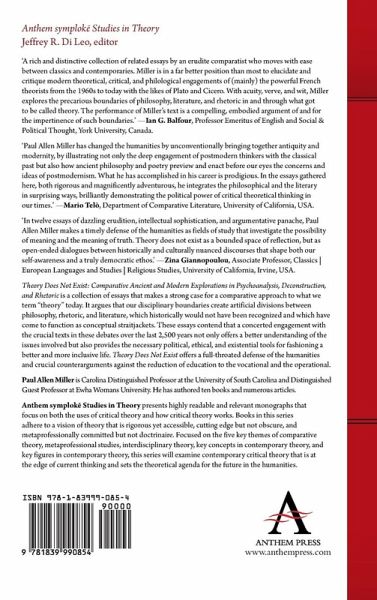 Acknowledgments Theory Does Not Exist: An Introduction Chapter 1 Debits and Credits or Accounting for My Life: A Defense of Reading and Humanistic Education Chapter 2 The Trouble with Theory: A Comparatist Manifesto Chapter 3 Placing the Self in the Field of Truth: Irony and Self-Fashioning in Ancient and Postmodern Rhetorical Theory Chapter 4 Rhetoric and Deconstruction: Plato, the Sophists, and Philosophy Chapter 5 The Platonic Remainder: Derrida's Khôra and the Corpus Platonicum Chapter 6 Cicero Reads Derrida Reading Cicero: A Politics and a Friendship to Come Chapter 7 On Borders, Race, and Infinite Hospitality: Foucault, Derrida, and Camus Chapter 8 Sartre, Politics, and Psychoanalysis: It Don't Mean a Thing If It Aint Got Das Ding Chapter 9 Enjoyment beyond the Pleasure Principle: Antigone, Julian of Norwich, and the Use of Pleasures Chapter 10 Lacan le con: Luce Tells Jacques Off Chapter 11 The Repeatable and the Unrepeatable: iek and the Future of the Humanities, or Assessing Socrates Chapter 12 Theory Does Not Exist Index
