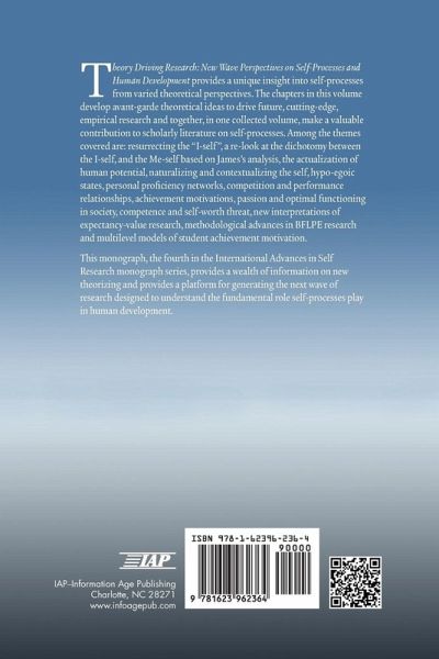 Theory Driving Research: New wave perspectives on self-processes and human development provides a unique insight into self-processes from varied theoretical perspectives. The chapters in this volume develop avant-garde theoretical ideas to drive future, cutting-edge, empirical research and together, in one collected volume, make a valuable contribution to scholarly literature on self-processes. Among the themes covered are resurrecting the "I-self", a re-look at the dichotomy between the I-self, and the Me-self based on James's analysis, the actualization of human potential, naturalizing and contextualizing the self, hypo-egoic states, personal proficiency networks, competition and performance relationships, achievement motivations, passion and optimal functioning in society, competence and self-worth threat, new interpretations of expectancy-value research, methodological advances in BFLPE research and multilevel models of student achievement motivation. This monograph, the fourth in the International Advances in Self Research monograph series, provides a wealth of information on new theorizing and provides a platform for generating the next wave of research designed to understand the fundamental role self-processes play in human development.
