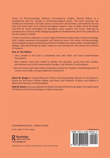 Theory for Ethnomusicology: Histories, Conversations, Insights, Second Edition, is a foundational work for courses in ethnomusicological theory. The book examines key intellectual movements and topic areas in social and cultural theory, and explores the way they have been taken up in ethnomusicological research. New co-author Harris M. Berger and Ruth M. Stone investigate the discipline's past, present, and future, reflecting on contemporary concerns while cataloging significant developments since the publication of the first edition in 2008.