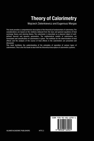 Calorimetry is one of the oldest areas of physical chemistry. The date on which calorimetry came into being may be taken as 13 June 1783, the day on which Lavoisier and Laplace presented a contribution entitled ,,Memoire de la Chaleur" at a session of the Academie Française. Throughout the existence of calorimetry, many new methods have been developed and the measuring techniques have been improved. At p- sent, numerous laboratories worldwide continue to focus attention on the development and applications of calorimetry, and a number of com- nies specialize in the production of calorimeters. The calorimeter is an instrument that allows heat effects in it to be determined by directly measurement of temperature. Accordingly, to determine a heat effect, it is necessary to establish the relationship - tween the heat effect generated and the quantity measured in the ca- rimeter. It is this relationship that unambiguously determines the mathematical model of the calorimeter. Depending on the type of ca- rimeter applied, the accuracy required, and the conditions of heat and mass transfer that prevail in the device, the relationship between the measured and generated quantities can assume different mathematical forms.