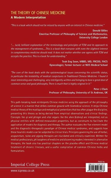 This path-breaking book reinterprets Chinese medicine using the approach of the philosophy of science in a manner that strikes common ground with biomedical science. It strips Chinese medical theory of the mystique and metaphysical pretentions that too often plague the discipline, presenting this theory as being derived from empirical observations and clinical findings. Concepts like qi and phlegm and vital organs like the shen (kidney) are interpreted, not as physical entities with defined measurable properties, but as constructs to facilitate the application of models for diagnosis and therapy. The author evaluates the five-element model and the diagnostic-therapeutic paradigm of Chinese medical syndromes, and suggests how these heuristic models can be subjected to clinical trials. Principles governing the use of herbal, acupuncture, tuina and qigong therapies are elucidated and critically examined. Written for medical professionals, philosophers of medicine and discerning readers interested in alternative therapies, the book also has practical chapters on the placebo effect and Chinese medical treatment of chronic illnesses, and a useful compilation of common Chinese herbs and formulations.