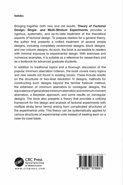 Bringing together both new and old results, this book provides a rigorous, systematic, and up-to-date treatment of the theoretical aspects of factorial design. To prepare readers for the general theory of multi-stratum factorial design, the author first presents a unified treatment of several simple designs. In addition to traditional topics and a thorough discussion of the popular minimum aberration criterion, the book covers many topics and results not discussed in related texts. With exercises and numerous examples, it only requires minimal prior knowledge of experimental design.