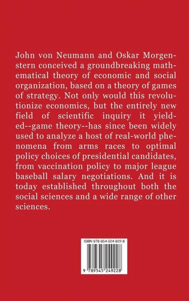 John von Neumann and Oskar Morgenstern conceived a groundbreaking mathematical theory of economic and social organization, based on a theory of games of strategy. Not only would this revolutionize economics, but the entirely new field of scientific inquiry it yielded--game theory--has since been widely used to analyze a host of real-world phenomena from arms races to optimal policy choices of presidential candidates, from vaccination policy to major league baseball salary negotiations. And it is today established throughout both the social sciences and a wide range of other sciences.