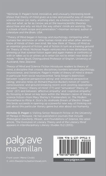 "Nicholas Pagan's bold, innovative, and unusually interesting book shows that theory of mind gives us a new and powerful way of reading science-fiction (or, really, anything else). As a bonus his introduction sets out what, as far as I know, are all the neuroscientific theories about how and why we intuit the way others' minds are working. This is abook of both scope and penetration." - Norman Holland, author of Literature and the Brain, USA