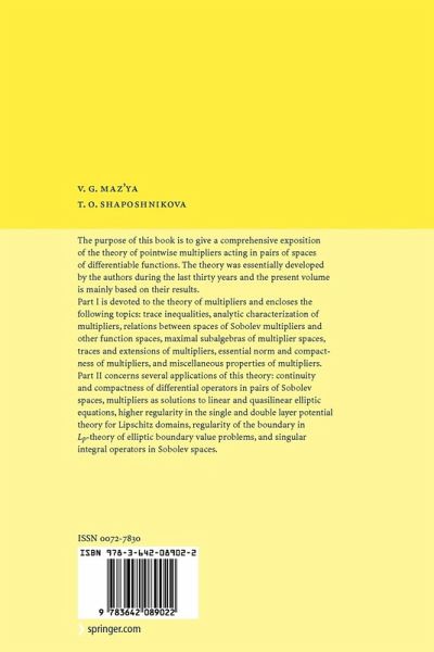 From the reviews: "This very interesting book ... collects the multitude of new results in this area, essentially obtained by the authors or inspired by their work during the past thirty years. ... This comprehensive monograph is very well written and structured. It will certainly become an extremely useful reference for mathematicians working in functional analysis and in the theories of partial differential, integral, and pseudodifferential operators. ... it recommendable both for experts and mathematicians with a wider field of interest." (Dorothee D. Haroske, Mathematical Reviews, Issue 2010 d)
