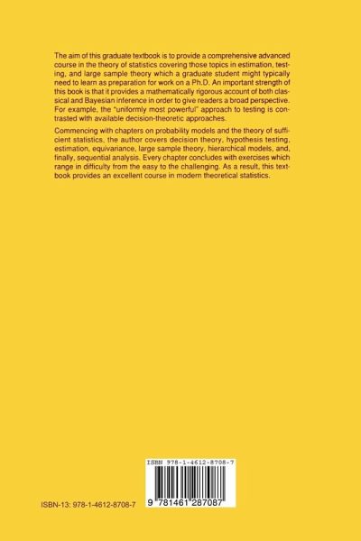 The aim of this graduate textbook is to provide a comprehensive advanced course in the theory of statistics covering those topics in estimation, testing, and large sample theory which a graduate student might typically need to learn as preparation for work on a Ph.D. An important strength of this book is that it provides a mathematically rigorous and even-handed account of both Classical and Bayesian inference in order to give readers a broad perspective. For example, the "uniformly most powerful" approach to testing is contrasted with available decision-theoretic approaches.