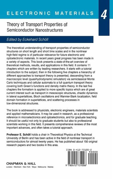 Recent advances in the fabrication of semiconductors have created almost un limited possibilities to design structures on a nanometre scale with extraordinary electronic and optoelectronic properties. The theoretical understanding of elec trical transport in such nanostructures is of utmost importance for future device applications. This represents a challenging issue of today's basic research since it requires advanced theoretical techniques to cope with the quantum limit of charge transport, ultrafast carrier dynamics and strongly nonlinear high-field ef fects. This book, which appears in the electronic materials series, presents an over view of the theoretical background and recent developments in the theory of electrical transport in semiconductor nanostructures. It contains 11 chapters which are written by experts in their fields. Starting with a tutorial introduction to the subject in Chapter 1, it proceeds to present different approaches to transport theory. The semiclassical Boltzmann transport equation is in the centre of the next three chapters. Hydrodynamic moment equations (Chapter 2), Monte Carlo techniques (Chapter 3) and the cellular au tomaton approach (Chapter 4) are introduced and illustrated with applications to nanometre structures and device simulation. A full quantum-transport theory covering the Kubo formalism and nonequilibrium Green's functions (Chapter 5) as well as the density matrix theory (Chapter 6) is then presented.
