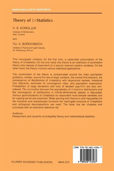 The theory of U-statistics goes back to the fundamental work of Hoeffding [1], in which he proved the central limit theorem. During last forty years the interest to this class of random variables has been permanently increasing, and thus, the new intensively developing branch of probability theory has been formed. The U-statistics are one of the universal objects of the modem probability theory of summation. On the one hand, they are more complicated "algebraically" than sums of independent random variables and vectors, and on the other hand, they contain essential elements of dependence which display themselves in the martingale properties. In addition, the U -statistics as an object of mathematical statistics occupy one of the central places in statistical problems. The development of the theory of U-statistics is stipulated by the influence of the classical theory of summation of independent random variables: The law of large num bers, central limit theorem, invariance principle, and the law of the iterated logarithm we re proved, the estimates of convergence rate were obtained, etc.