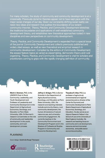 For many scholars, the study of community and community development is at a crossroads. Previously dynamic theories appear not to have kept pace with the major social changes of our day. Given our constantly shifting social reality we need new ideas and research that pushes the boundaries of our extant community theories. Theory, Practice, and Community Development stretches the traditional boundaries and applications of well-established community development theory, and establishes new theoretical approaches rooted in new disciplines and new perspectives on community development. Expanded from a special issue of the journal Community Development, Theory, Practice, and Community Development collects previously published and widely cited essays, as well as new theoretical and empirical research in community development. Compiled by the editors of Community Development, the essays feature topics as varied as placemaking, democratic theory and rural organizing. Theory, Practice, and Community Development is vital for scholars and practitioners coming to grips with the rapidly changing definition of community.