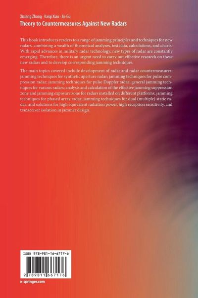The main topics covered include development of radar and radar countermeasures; jamming techniques for synthetic aperture radar; jamming techniques for pulse compression radar; jamming techniques for pulse Doppler radar; general jamming techniques for various radars; analysis and calculation of the effective jamming suppression zone and jamming exposure zone for radars installed on different platforms; jamming techniques for phased array radar; jamming techniques for dual (multiple) static radar; and solutions for high equivalent radiation power, high reception sensitivity, andtransceiver isolation in jammer design.