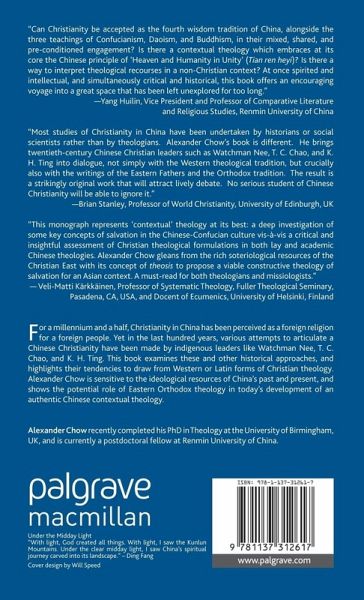 "Alexander Chow ... analyzes some of the fundamental differences between the traditional Chinese worldview and that of historic Christianity. ... This book is highly recommended for those who are involved or who contemplate ministry in the Far East. Itcontains an excellent summary of the theological thinking of several contemporary Chinese Christians and offers insightful ideas regarding contextualization that will be of use to ministers of the gospel whether or not they agree with Chow's emphasis on Eastern Orthodoxy." (Larry Poston, Missiology, Vol. 42 (3), July, 2014)